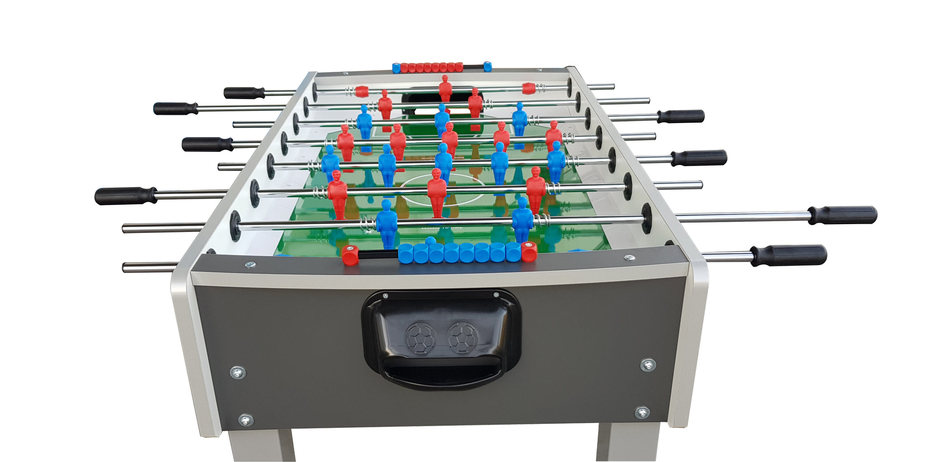 Not only is this table built to perform, but it also looks great doing it. The sleek grey finish, paired with vibrant red and blue player figures, makes it a standout piece in any room. The bold colours also help you quickly tell the teams apart, even during the most fast-paced moments of the game.